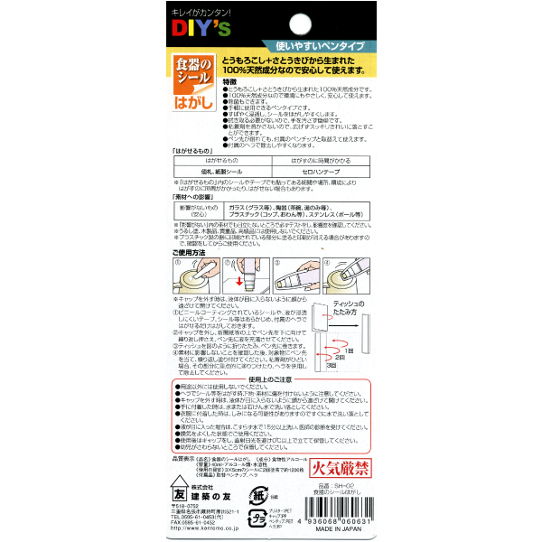| セット内容 | 食器のシールはがし(40ml)・取替ペンチップ・ヘラ | ||
